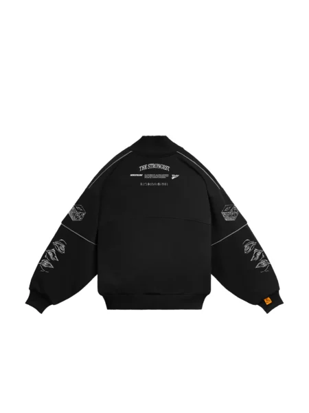Утеплённый пуховик с двусторонним дизайном. Одна сторона с фирменными иллюстрациями, другая – с фольгированной монограммой. Имеет два прорезных кармана с боку и регулируемый фиксатор в подоле. Выдерживает температуру около 20-25 градусов мороза.