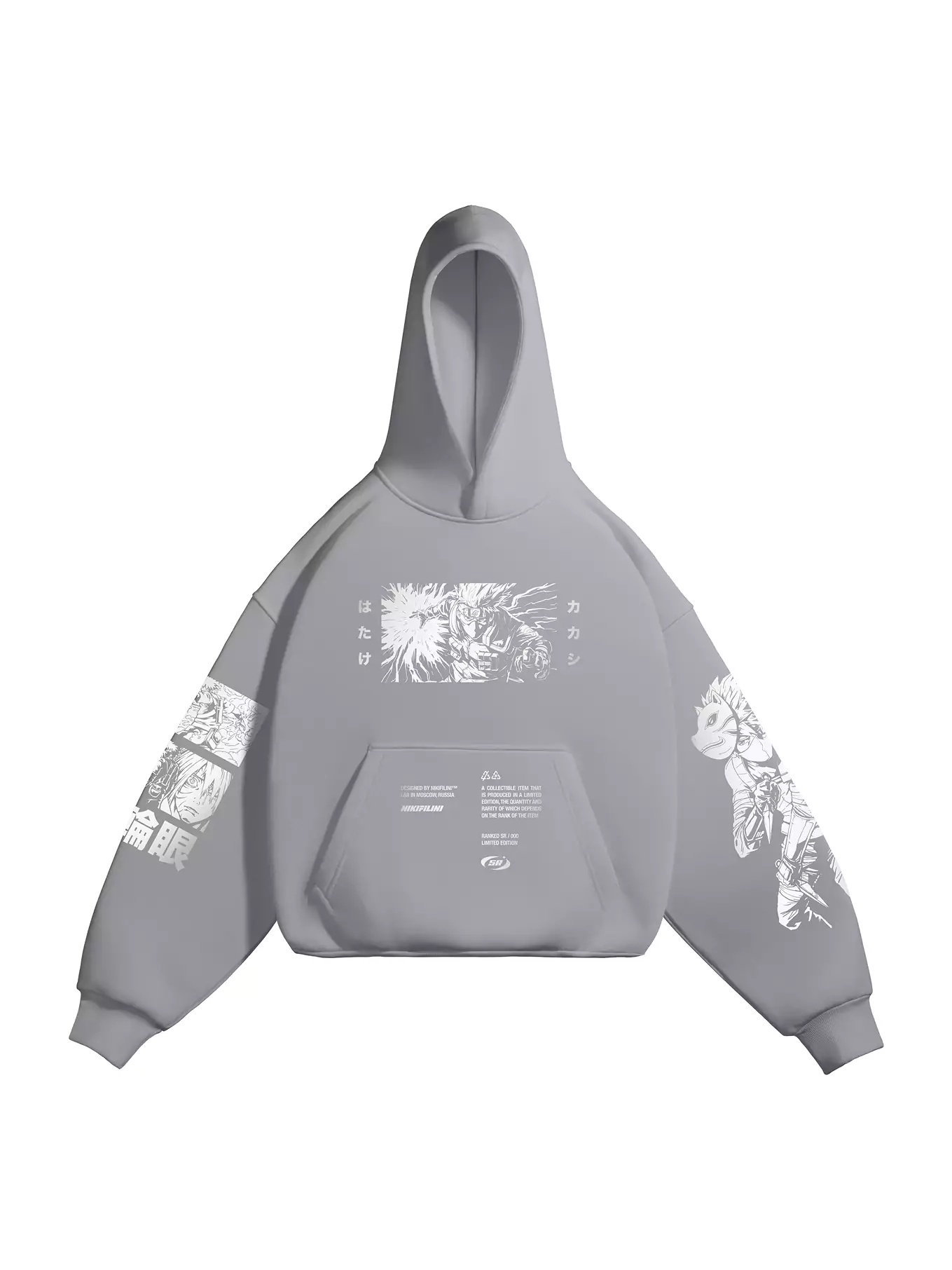 Принт выполнен светоотражающей пленкой. Персонаж – Какаши Хатаке, по мотивам аниме Наруто.